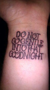 I will not go gentle into that good night! (A phrase that means enough to me that I got it tattooed….)